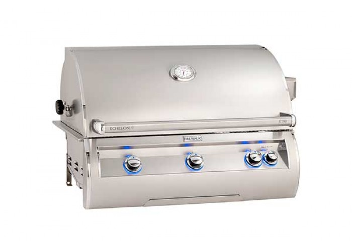 Fire Magic Echelon Diamond is a superior grill combining the ultimate performance, beauty and innovation. With sleek lines, a unique contoured face and state-of-the-art features such as hot surface ignition, blue backlit knobs, a dedicated wood chip smoker drawer and an optional Magic View window, Echelon Diamond defines luxury in grilling.